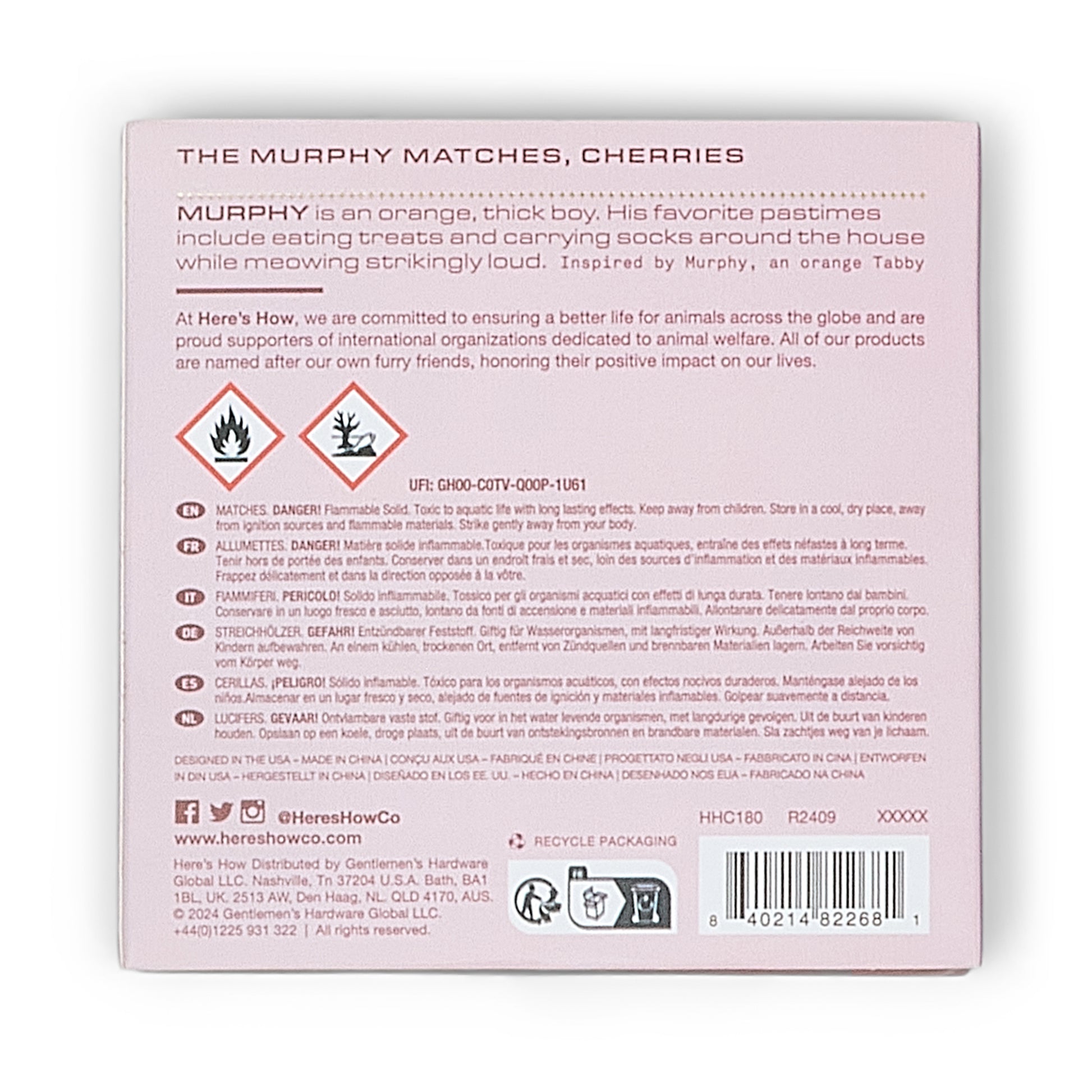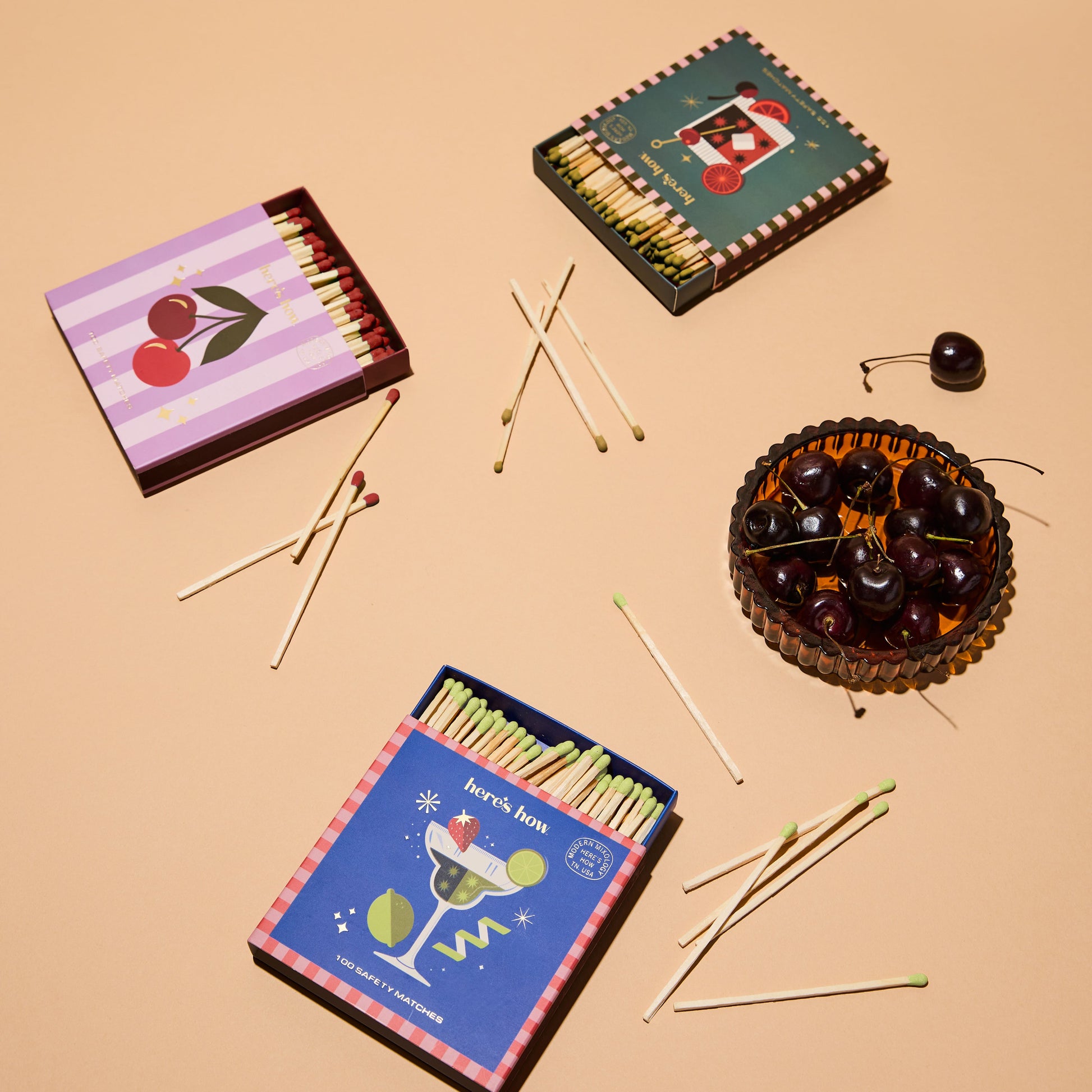 Ajoutez la touche finale à vos moments de convivialité avec les allumettes décoratives Cherry de Here’s How. Présentées dans une élégante boîte illustrée de cerises graphiques, elles sont pensées pour sublimer vos apéritifs, dîners et soirées cocktails.