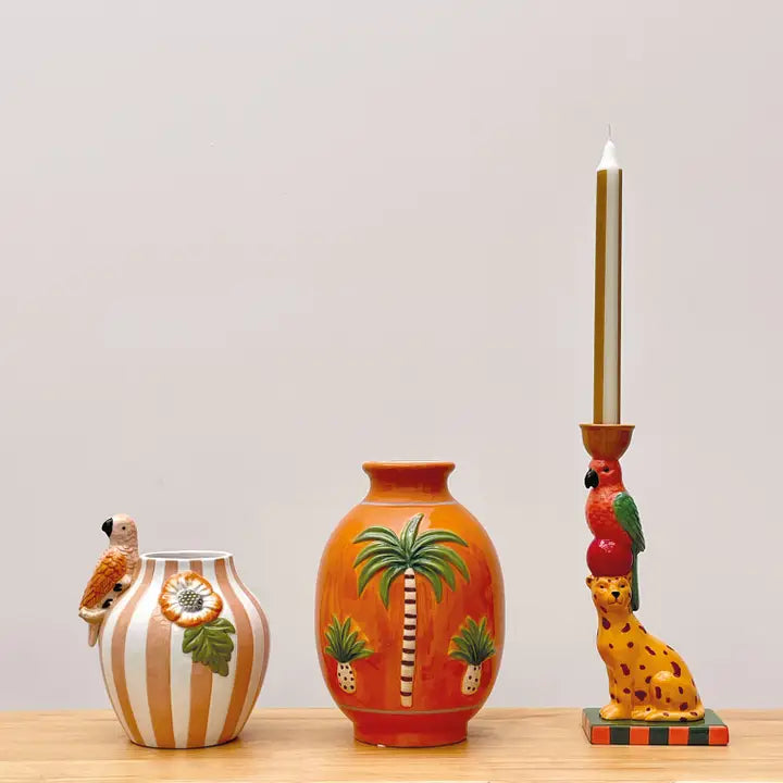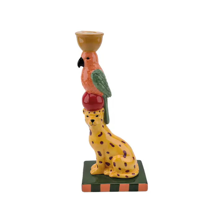 Véritable objet décoratif, le bougeoir Animaux OPJET PARIS séduit par son design sculptural et plein de fantaisie. Réalisé en faïence et peint à la main, il met en scène une composition d’animaux empilés aux couleurs vibrantes et aux détails délicats.