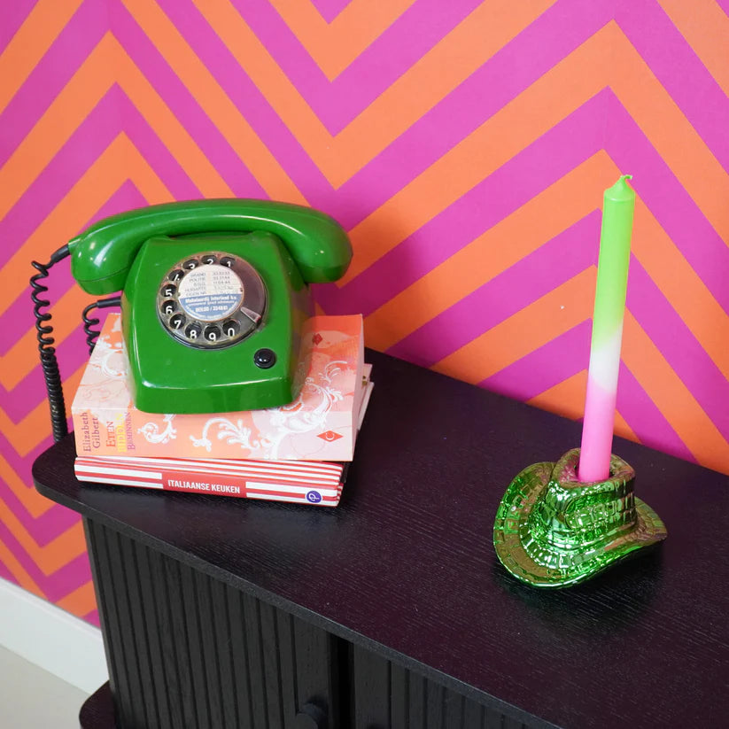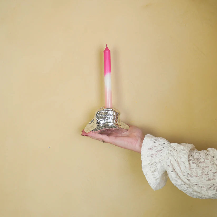 Avec sa silhouette iconique et son fini métallisé ultra-lumineux, il donne immédiatement du caractère à une table, une étagère ou un rebord de fenêtre. Associez-le à une bougie longue colorée pour un look fun, ou à une teinte neutre pour laisser le chapeau voler la vedette.