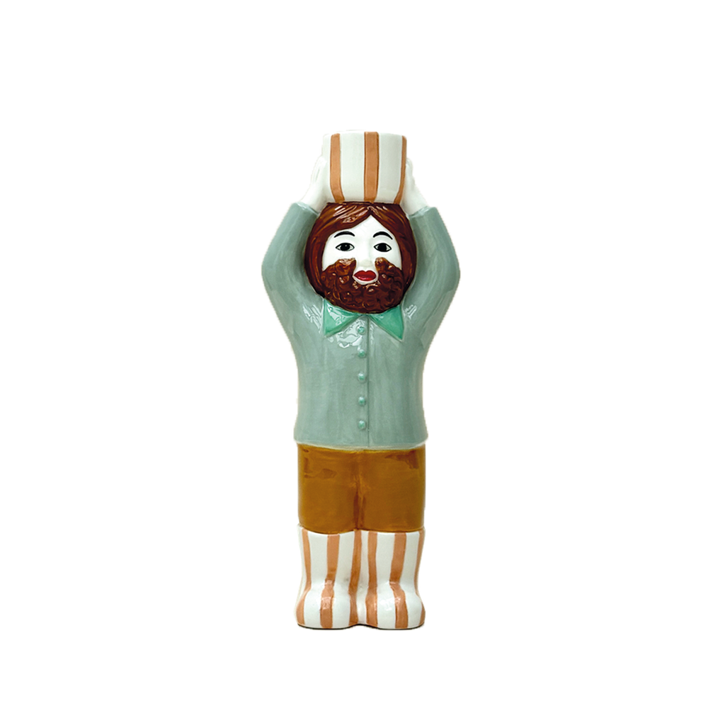 À la fois graphique et plein de caractère, le bougeoir Homme OPJET PARIS est une pièce décorative forte qui attire immédiatement le regard. Réalisé en faïence et peint à la main, il met en scène un personnage stylisé aux couleurs douces et au design volontairement naïf.
