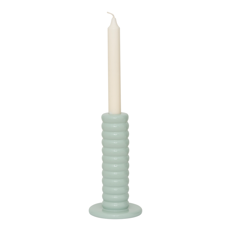 Sa teinte sea foam, douce et fraîche, équilibre parfaitement la silhouette audacieuse du bougeoir, lui permettant de s’intégrer aussi bien dans une décoration contemporaine que plus éclectique. Posé sur une table, une étagère ou une console, TEBONGO devient un véritable objet décoratif, même sans bougie.