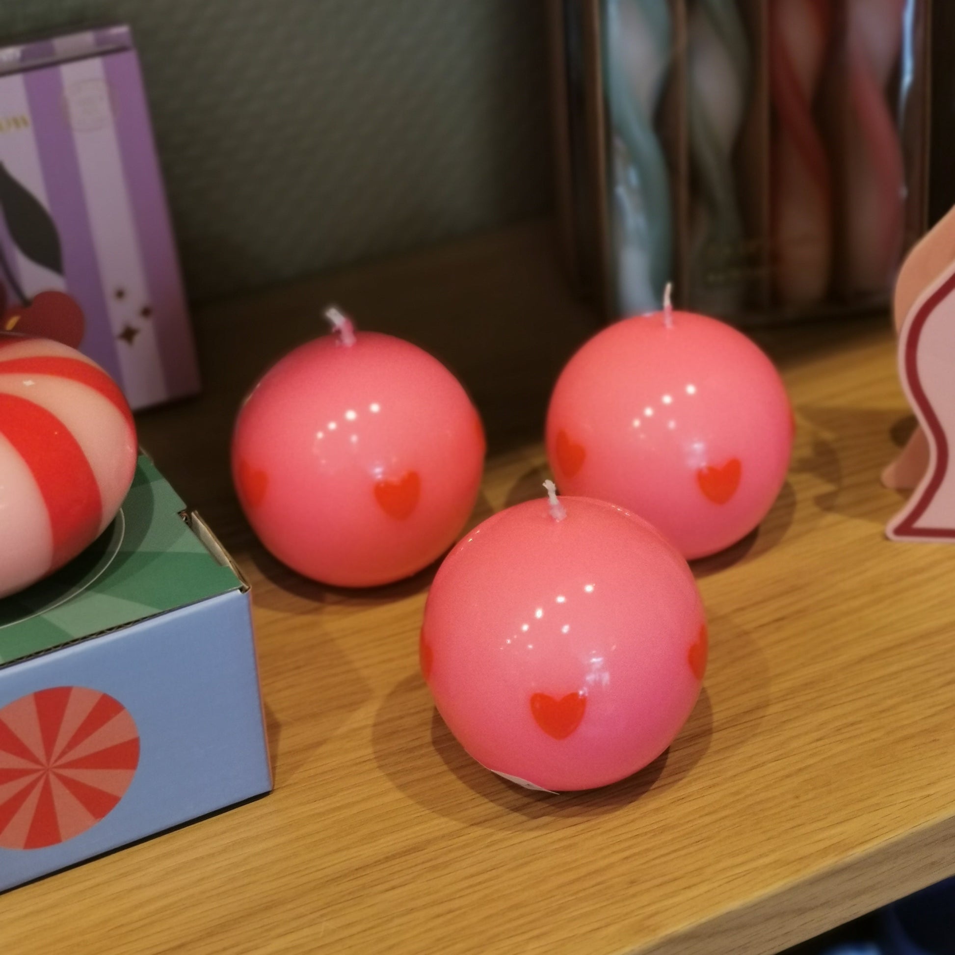 La bougie sphérique rose AIF Candles séduit par son design doux et expressif, à mi-chemin entre objet décoratif et création artisanale. Sa forme ronde à la finition brillante est délicatement ponctuée de cœurs en relief 3D, intégrés directement dans la cire.