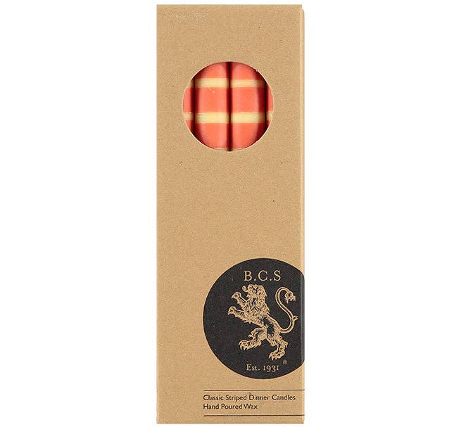 Apportez de la couleur et du caractère à vos tables avec ces bougies graphiques coulées à la main, aux rayures jasmin, rouille et bleu pétrole.