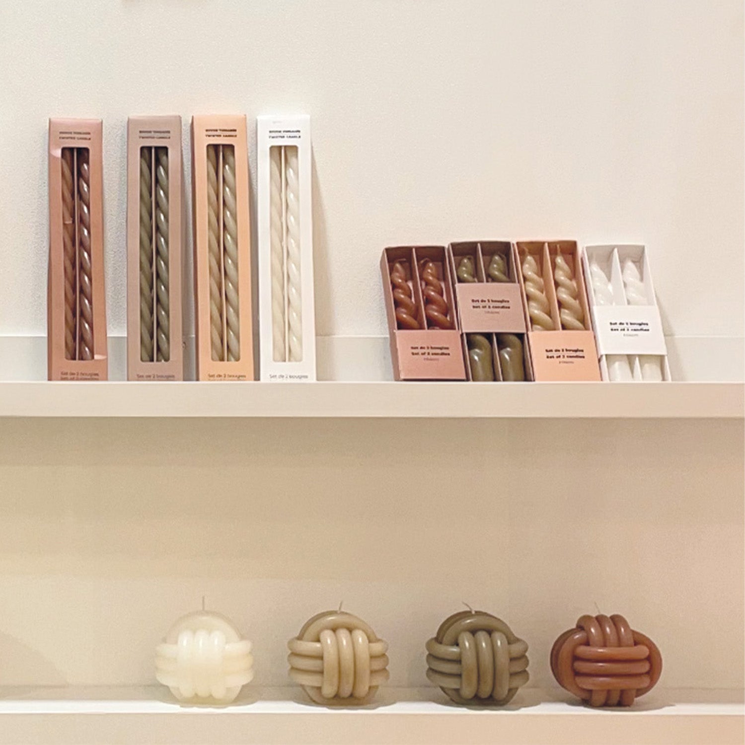 Set de 2 bougies unies longues (25 cm) torsadées.