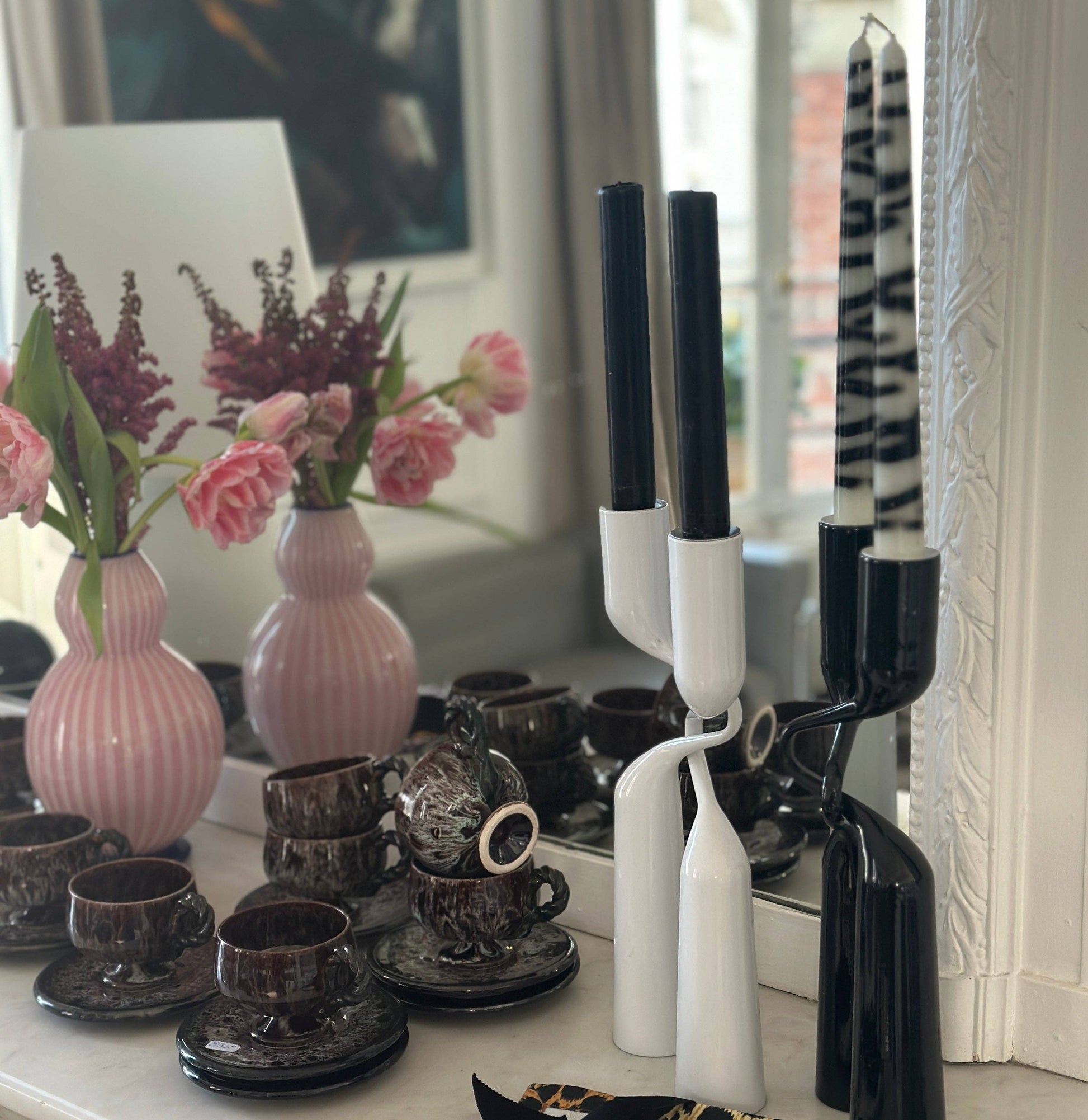 Leur motif noir et blanc audacieux attire le regard et fait de chaque bougeoir une pièce de caractère.