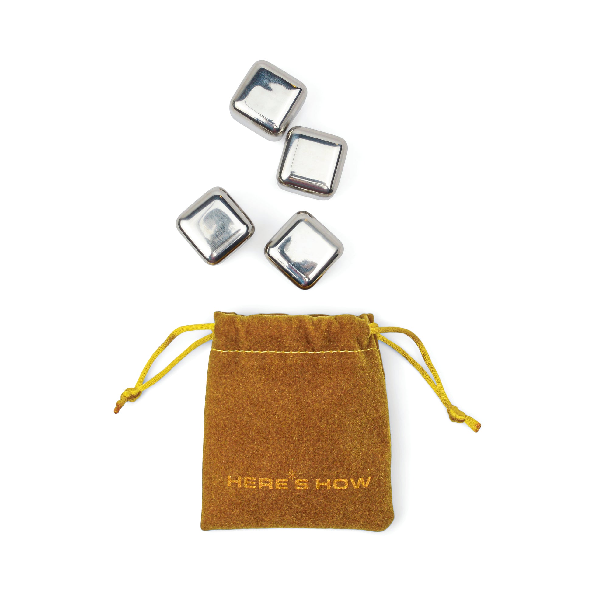 Le set RUBY contient quatre glaçons en acier inoxydable, à placer au congélateur pour refroidir vos boissons préférées sans les diluer !
