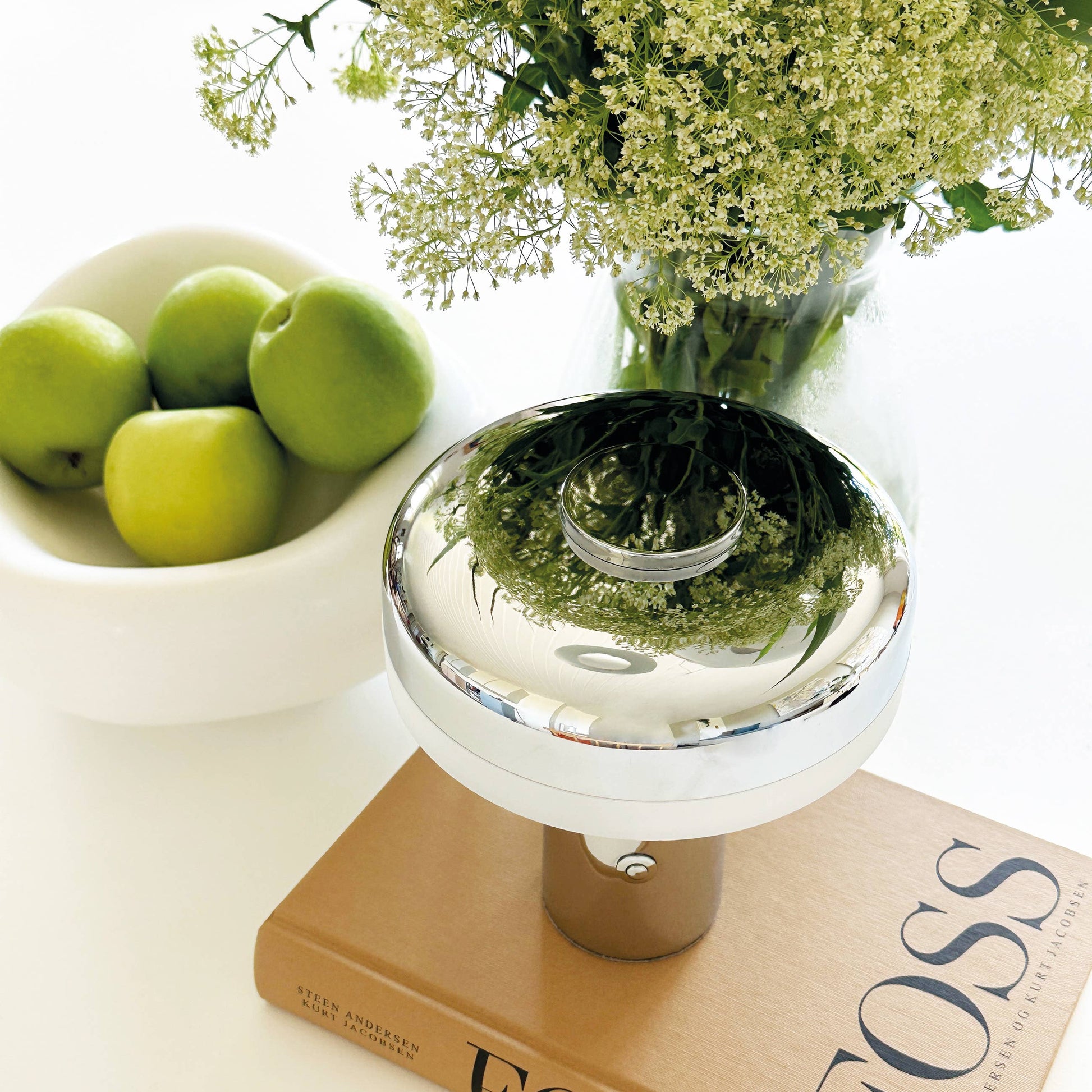 Que ce soit sur une table de chevet, une étagère design ou une terrasse, la lampe PORTER chrome attire tous les regards tout en s’intégrant avec subtilité dans les décors modernes.