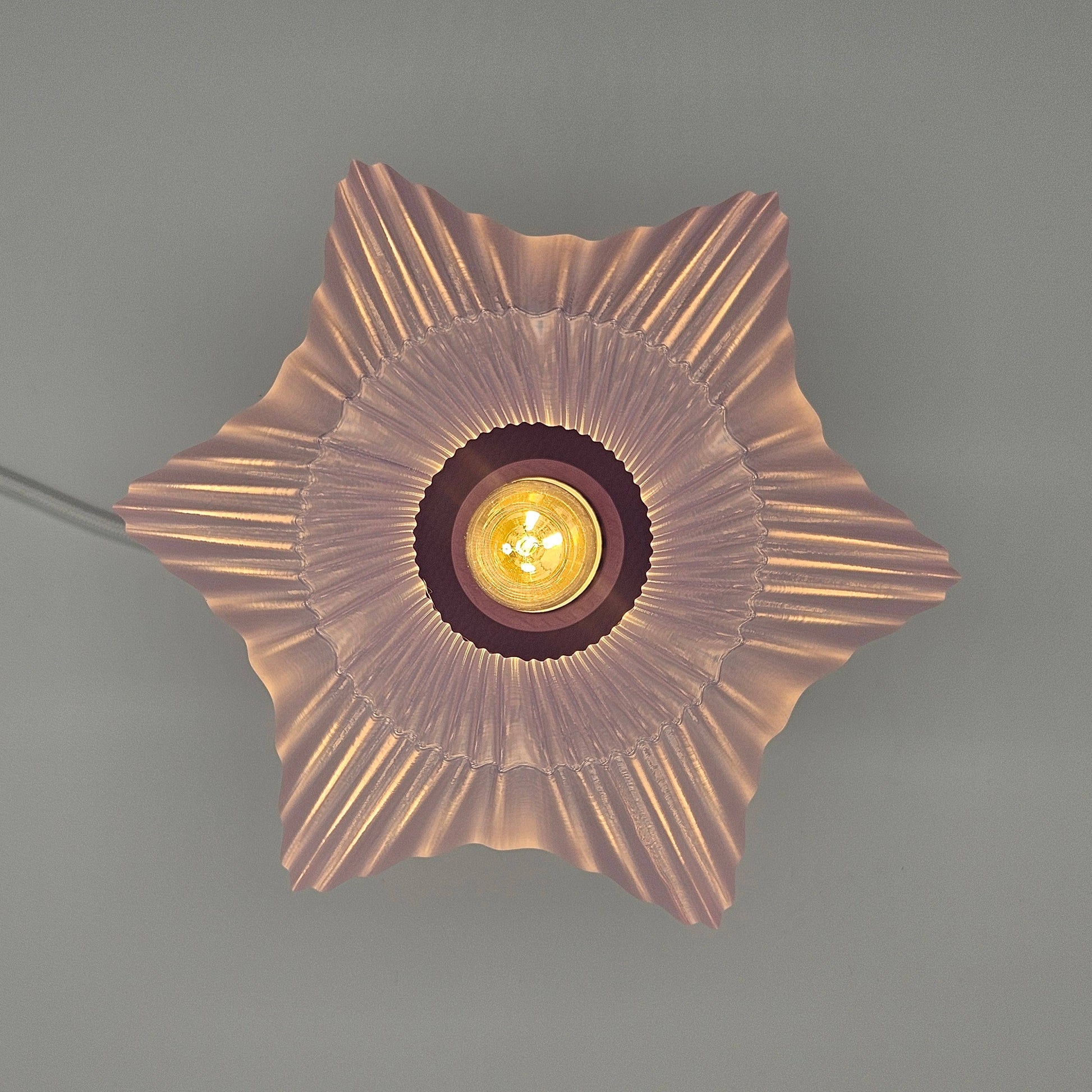 Sa silhouette étoilée, imprimée en 3D en lavande translucide, diffuse une lumière douce et chaleureuse – idéale pour créer une ambiance apaisante dans un salon, une chambre ou un bureau.