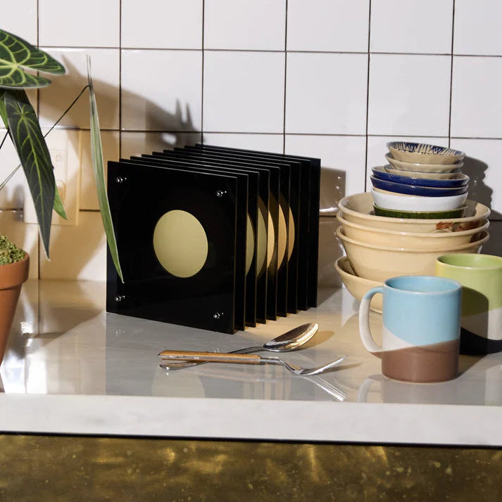 Graphique et sculpturale, la lampe LOP carrée Dark Grey de BANG joue avec les couches et la lumière pour créer un effet visuel fascinant.