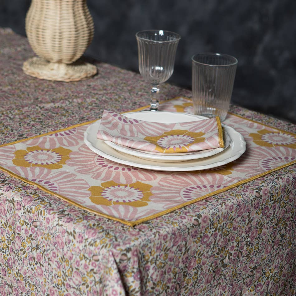 Lot de deux serviettes, en coton, avec imprimé floral pop et passepoil en point moutarde.