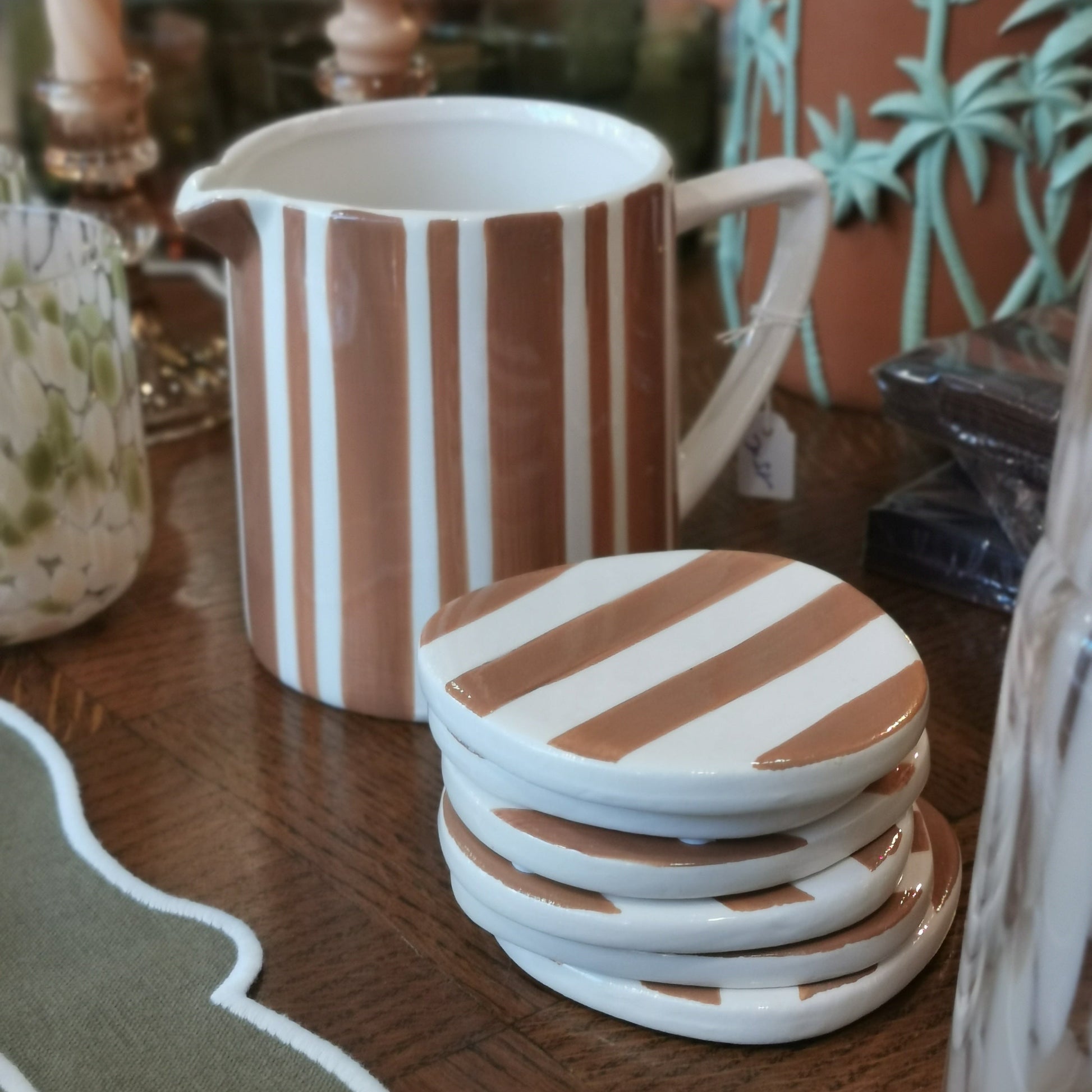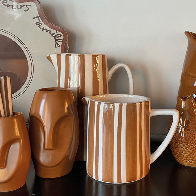 Un clin d’œil rétro très tendance pour ce joli pichet signé OPJET PARIS. Son motif rayé caramel/blanc donne le ton : une allure seventies pile dans l’air du temps, à détourner aussi bien en vase qu’en objet déco.