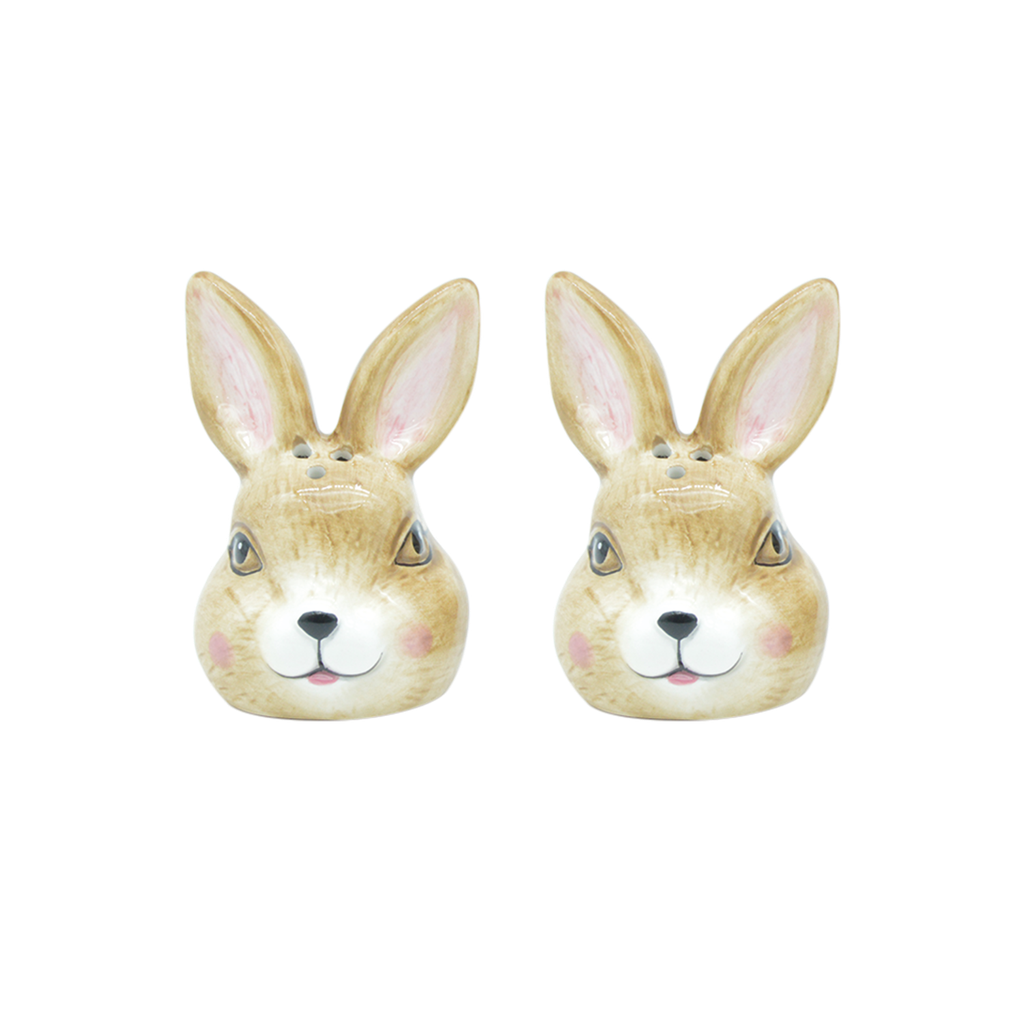 Ce set de salière et poivrière lapin revisite avec humour et douceur les indispensables de la table. Réalisé en faïence, ce duo s’inspire de l’esthétique barbotine, tendance emblématique au charme rétro et artisanal.