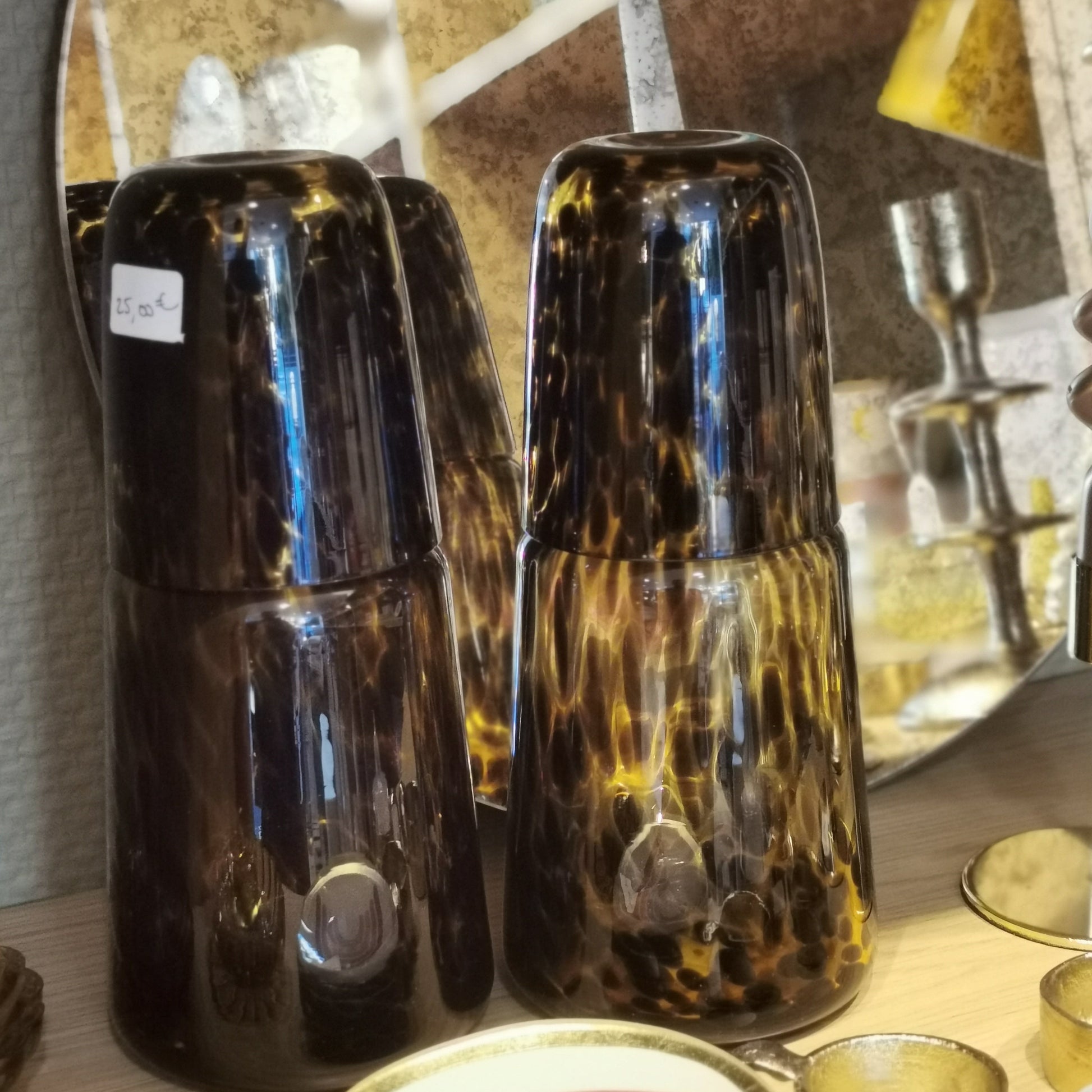Son motif léopard moucheté, tout en nuances d’ambre et de noir, capte magnifiquement la lumière et évoque à la fois chaleur, caractère et raffinement. Que ce soit sur une table de chevet, dans une salle de bain ou dans un coin bar, il apporte une touche décorative originale et fonctionnelle.