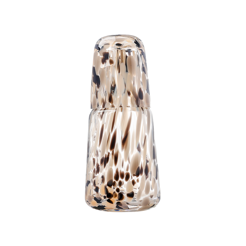 Ce joli duo carafe + verre signé OPJET PARIS allie praticité et élégance. En verre soufflé moucheté de noir et de marron, il sublimera votre table de chevet, votre salle de bain ou une table d’appoint. Le verre s’emboîte parfaitement sur la carafe pour une solution gain de place aussi déco qu’utile.