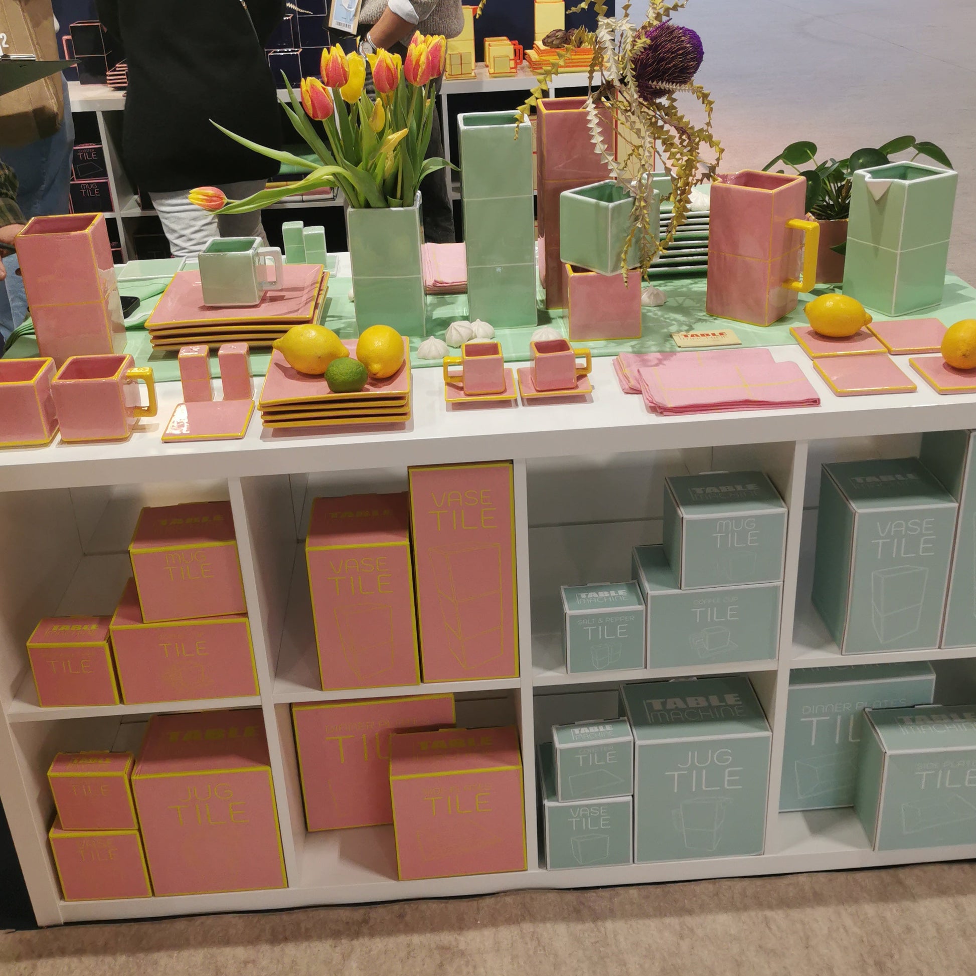Leur forme cubique, signature de la collection Tile, joue avec les lignes droites et les contrastes doux du vert et du blanc, pour une table moderne et singulière.