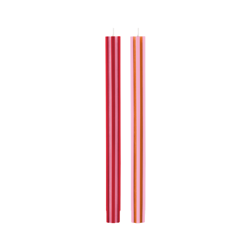 Conçues en stéarine 100 % végétalienne, elles brûlent proprement, lentement et sans fumée. On aime leur duo de teintes chaleureuses (rose, rouge, orange), idéal pour accompagner le set de bougeoirs PIPPO.