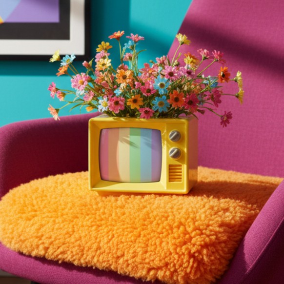 Le vase Pastel TV diffuse un message simple : no signal, no problem.