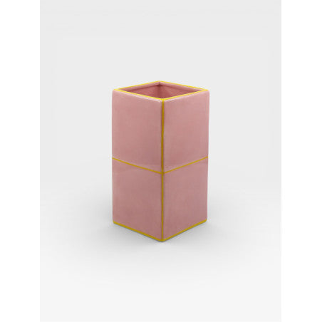 Décliné en trois tailles, le vase TILE peut se suffire à lui-même comme objet décoratif ou accueillir fleurs fraîches et compositions séchées. Son duo jaune & rose s’intègre facilement dans un intérieur contemporain, minimaliste ou plus audacieux.