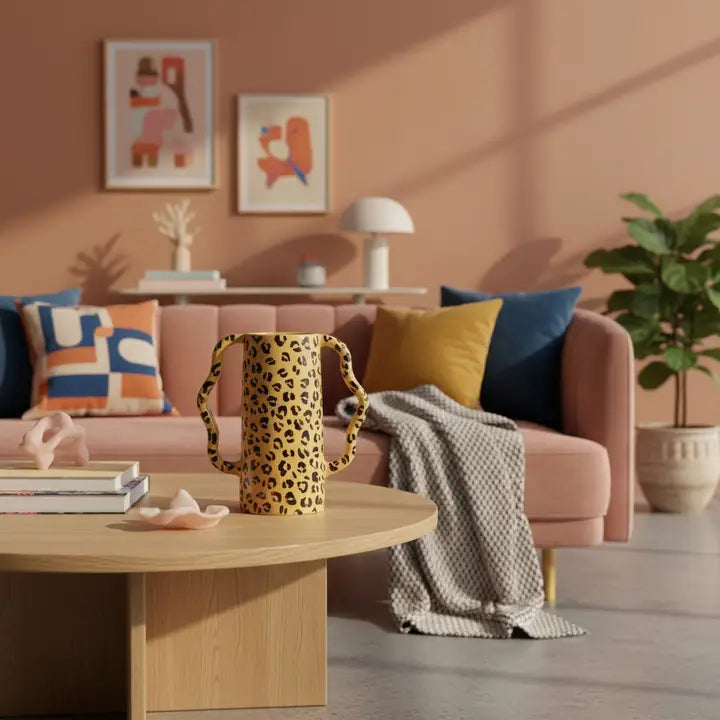 Le vase TINGIS léopard attire le regard par ses deux anses tout aussi généreuses qu'asymétriques..et par son motif léopard, peint à la main. Une pièce de caractère pour votre déco, mais tout en douceur !